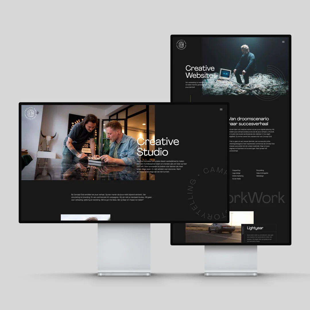 Voor Concept God | Creative Studio hebben we een website gebouwd die past bij hun visie: een studio die ideeën tot leven brengt, van kleine details tot grootse verhalen.